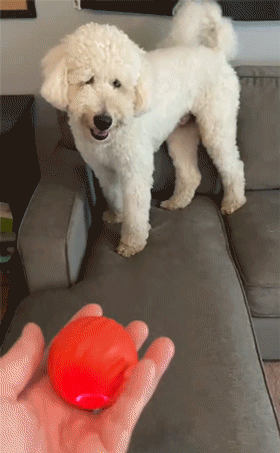 Bouncing Ball is equipped with a powerful motor and works on all kinds of surfaces - wood flooring, tile, carpet - you name it! Moreover, with a built-in high-capacity battery, your playtime is extended for long hours, so there's no need to buy batteries or charge it every day. Just charge it with an included USB cord and enjoy endless playtime!
