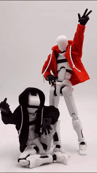 【Accessories】 The cool action figure includes six interchangeable hands, seven weapons, one figure stand, and full-body armor. Innovative design additionally includes: Middle Finger Gesture (Right Hand) , Peace Sign (Left Hand) ✌️, Specially Designed Joints for Hoodie, and Hoodie.
